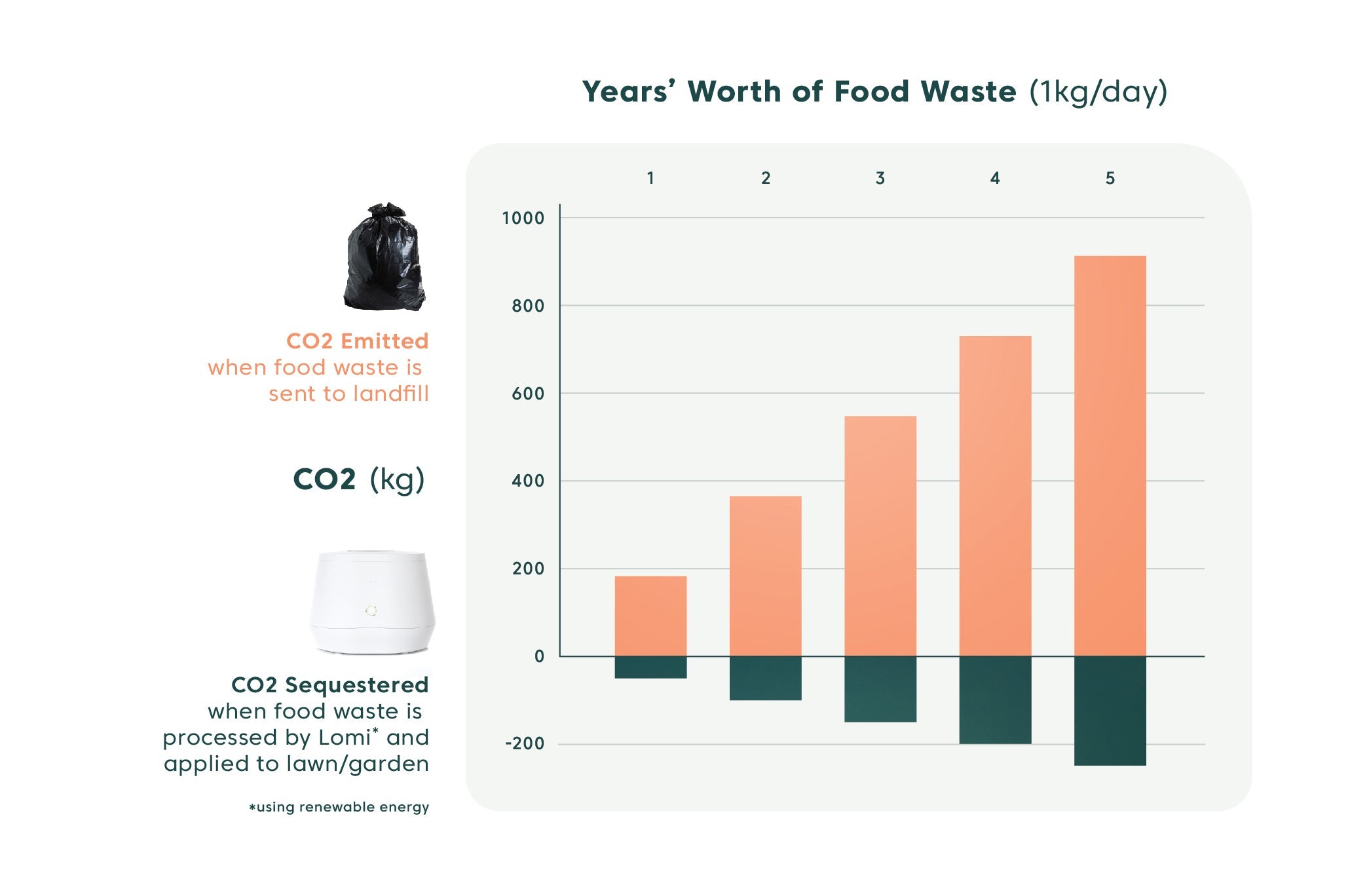 Lomi is currently in more than 200,000+ households and, together, the Lomi community has created up to 85 million pounds of nutrient-rich natural fertilizer with their Lomi - we call it Lomi Earth - that has helped to regenerate the soil and saved up to 34,000 metric tons of CO2e emissions.